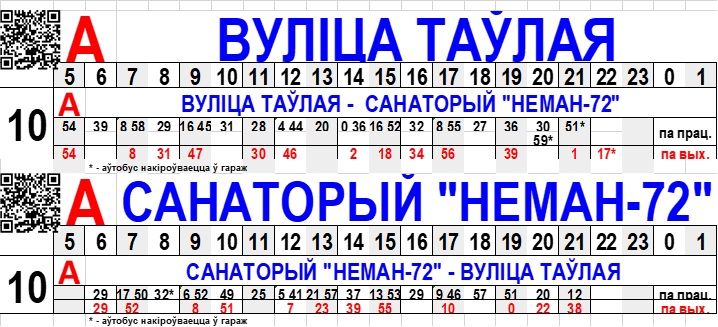 С 28.02.2026 г. вносятся изменения в расписание движения городского автобусного маршрута №10 «Улица Тавлая – Санаторий «Неман-72»: